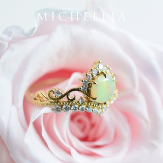 My husband let me pick out my anniversary gift so my best friend and I went on the hunt for something incredible! Once we found Michellia’s page we knew this was it, the hard part was narrowing it down. I’ve never seen such a gorgeous collection of stones with stunning designs. We finally decided on this piece in rose gold with the Australian fire opal:) I was able to request which colors I would like to be more prominent, which was such a special treat. It took about a month and I remember the moment I put it on so clearly! It was like pure magic, the most beautiful thing I’d ever seen. Delicate, bright, gorgeous energy just radiating off of it! I wear it every day. I can’t wait to purchase my next piece. You will be so lucky to own anything from here:) Thank you!